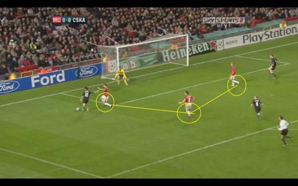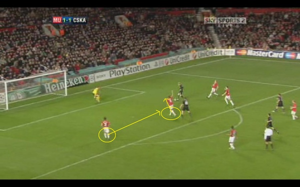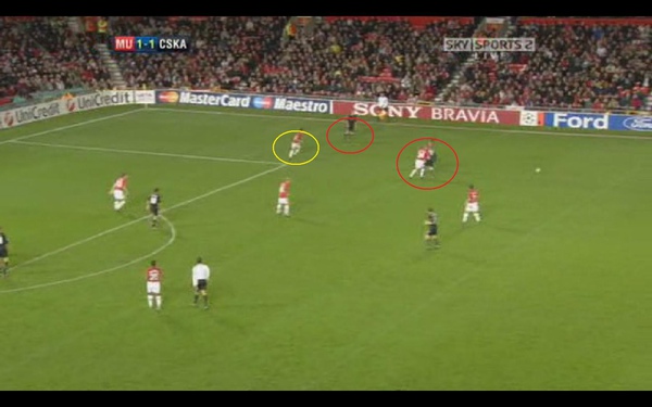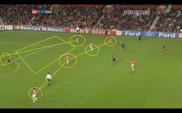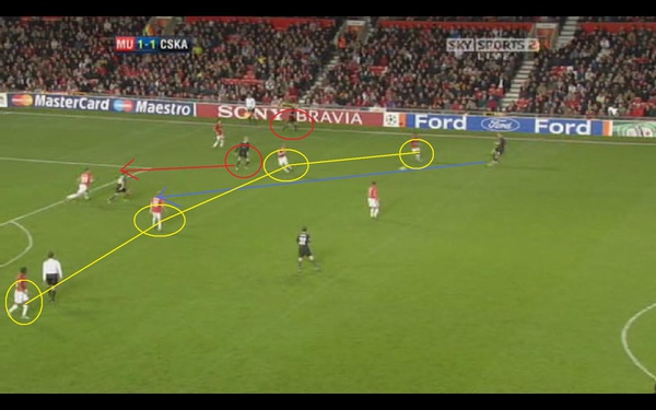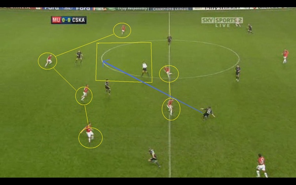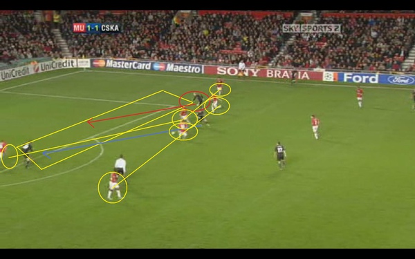 這時我們看到曼聯的後衛 其實已經把後防線重新組織起來