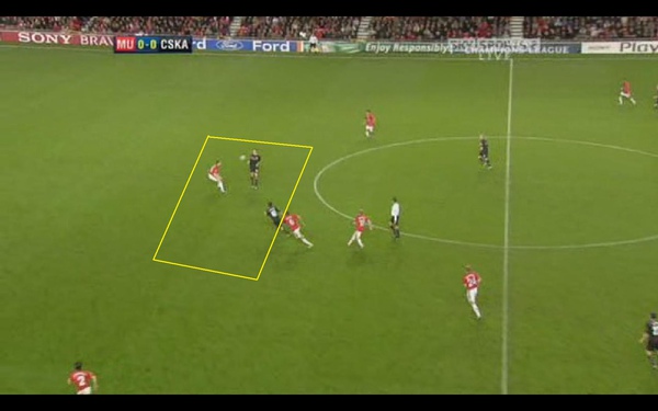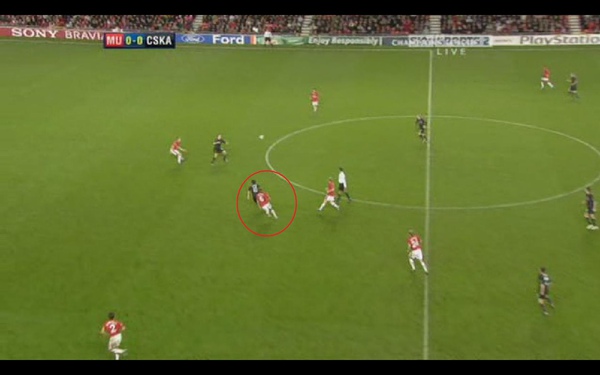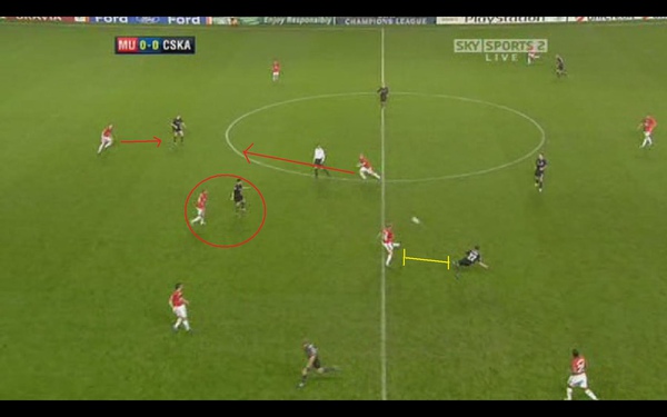 我們可以看到 曼聯中場防線與後衛線之間 出現了很大的空檔