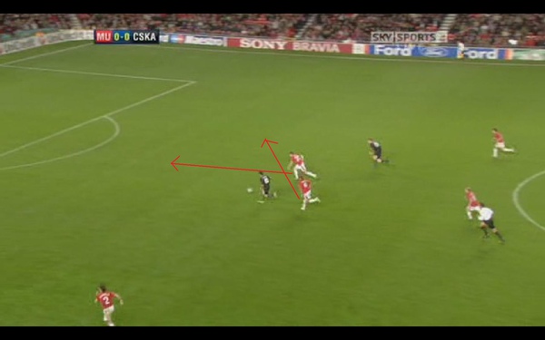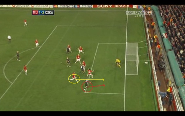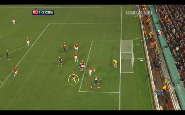 但是對方已經把球傳出去 同時 佛萊徹對於對方中場的壓迫也不足