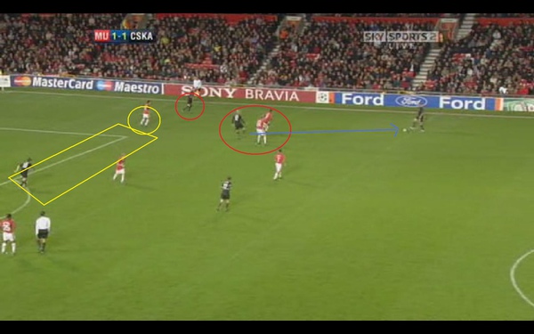 產生了一個無人防守的區域 讓對手可以傳球給兩名前鋒